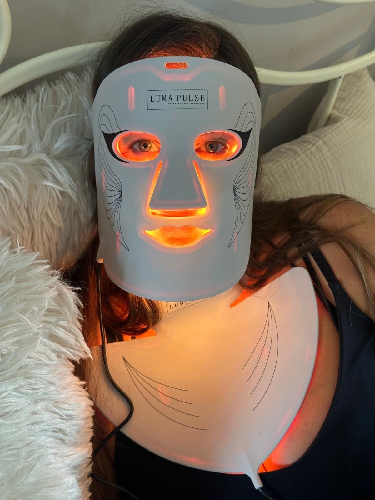 "An advanced at-home beauty solution that I love for rejuvenating my face, neck and chest is the Luma Pulse LED light therapy mask set. Developed based upon NASAβs scientific findings, the lightwei...