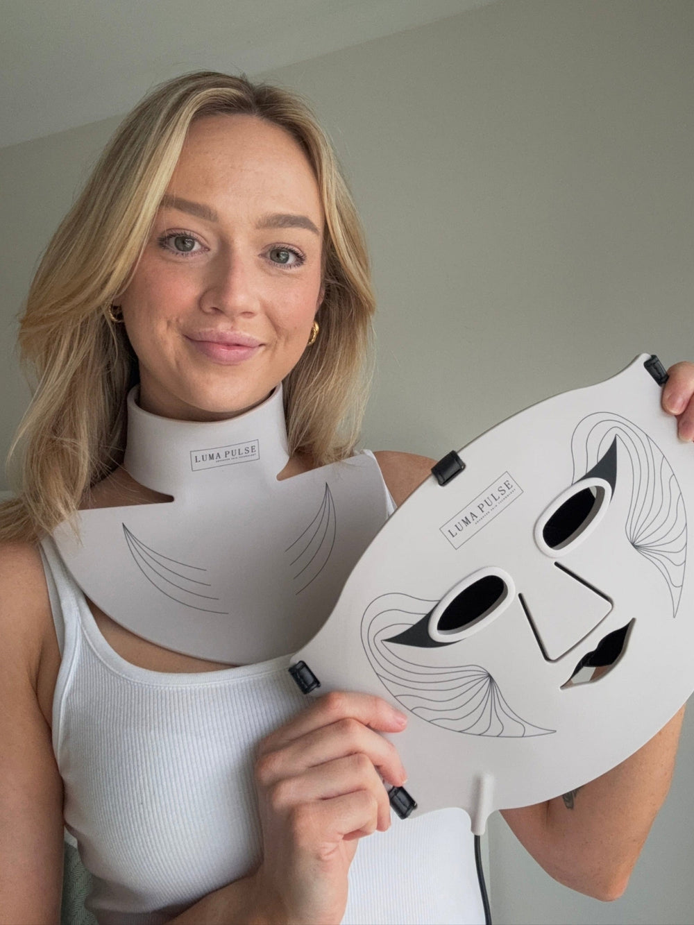 "An advanced at-home beauty solution that I love for rejuvenating my face, neck and chest is the Luma Pulse LED light therapy mask set. Developed based upon NASAβs scientific findings, the lightwei...